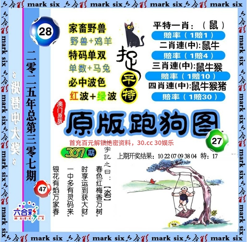 | 307期 | 鼠 | 绿双 | 2尾 | 开狗20 |